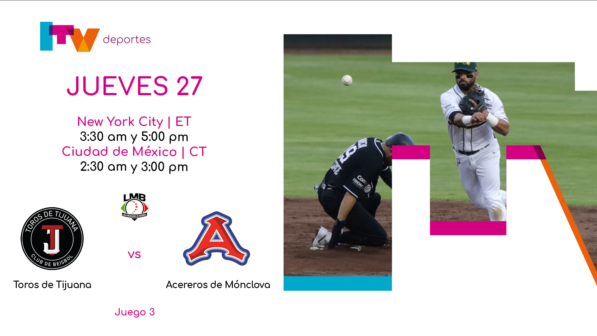 LMB 2022 Juego 3 Toros vs Acereros LMB 2022 Juego 3 Toros vs Acereros 4:33:05 / 2024 / TV-G Partido de béisbol de la LMB 2022 Toros de Tijuana vs Acereros de Mónclova Juego 3 Genres Deportes More from Deportes Recommended