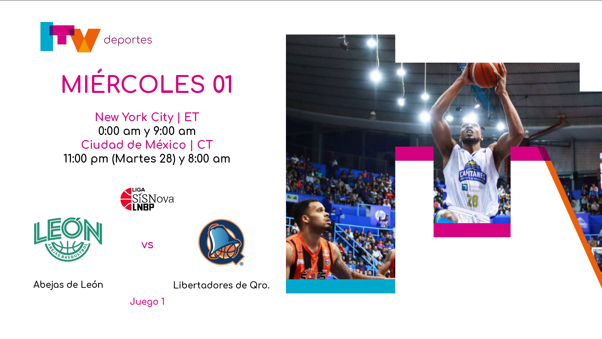 Partido de basquetbol de la Liga Nacional de Baloncesto Profesional de México entre Abejas de León vs Libertadores de Querétrao en su primer juego de la serie Juego 1 (rerpetición)
